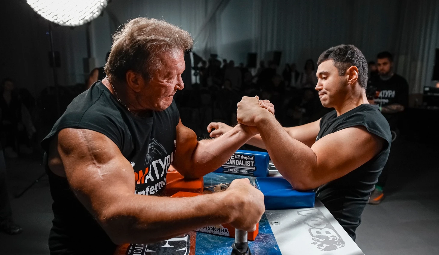 Когда в армфайте сошлись Роман Филиппов, с весом 96 кг, и Сергей Червов, с весом 172 кг, разница между ними составила 76 килограммов, ровно столько весит, например, Игорь Сладко, еще один участник проекта.