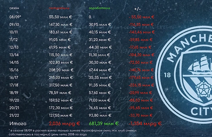 Нескромная трансферная математика «Сити» в эру арабского шейха Мансура отвечает на этот вопрос так — более 2 млрд фунтов потрачено с общим минусом в 1,3 млрд (данные transfermarkt.com).