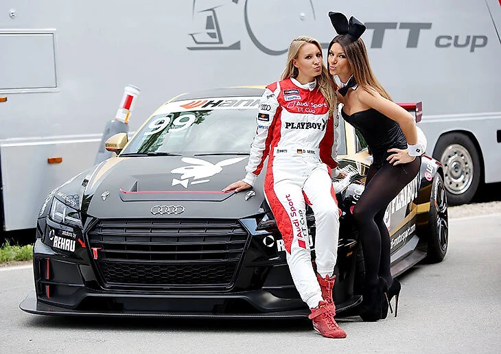 Но победителем наших сердец точно должна стать история, когда за рулем спорткара одной из брендированных команд в 2015-м оказалась реальная плеймейт: девушка Playboy май-2008 Дорин Зайдель (она, если что, слева) была участницей Audi Sport TT Cup 2015, где пять раз поднималась на подиум и финишировала третьей в общем рейтинге.