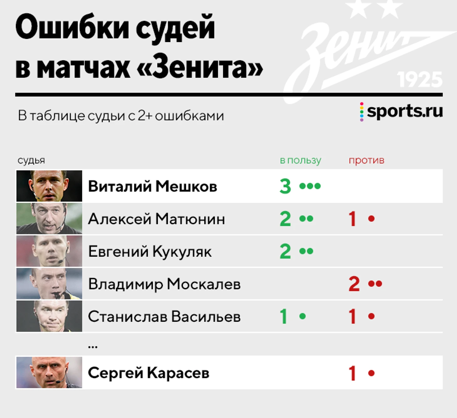 Мало кто сомневается в профессионализме Сергея Карасева или Виталия Мешкова. Ошибки не могут говорить о предвзятости арбитров.