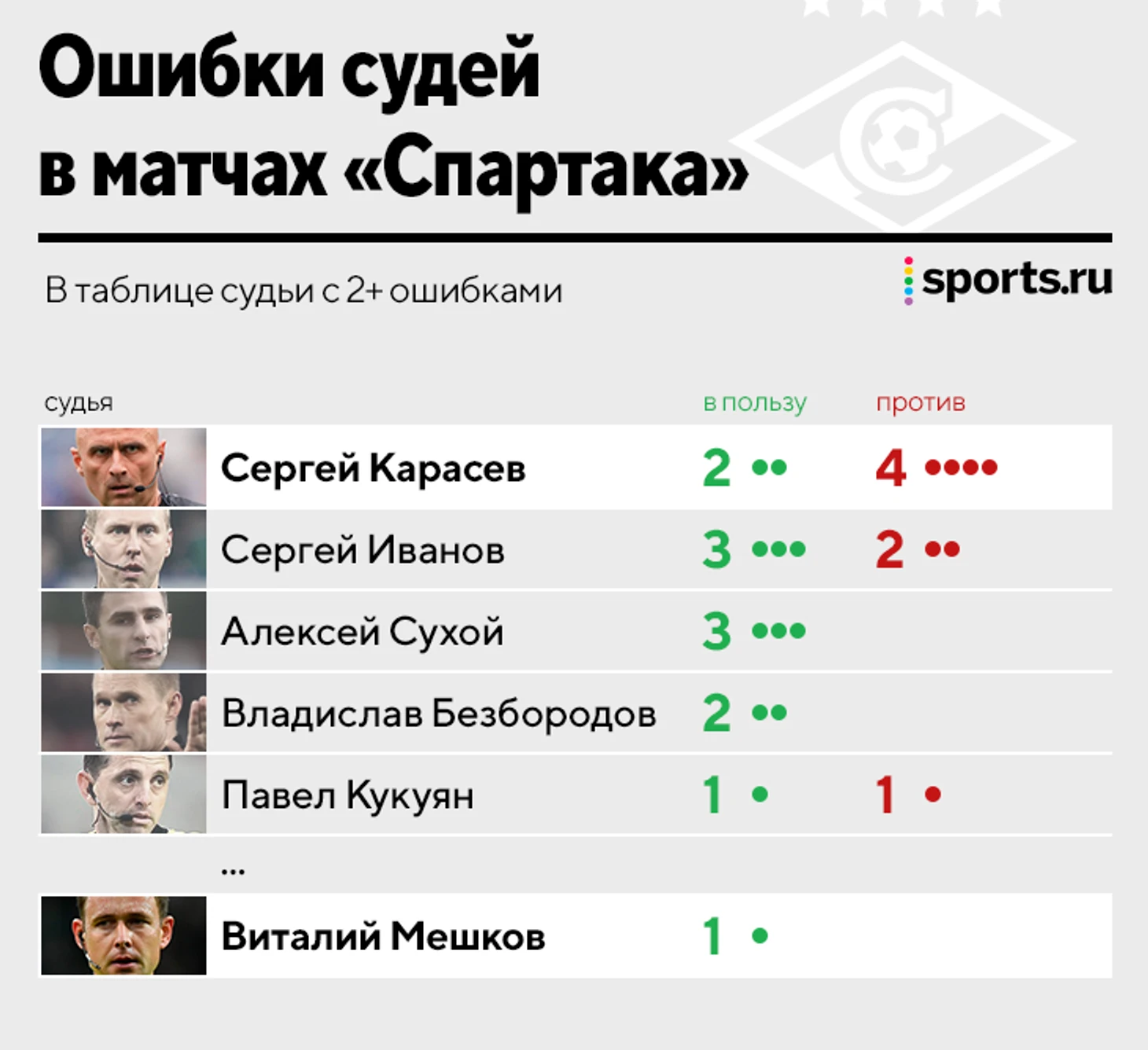 Но давайте перед матчем уберем эмоции в сторону и посмотрим на статистику ошибок в матчах «Спартака» и «Зенита».
