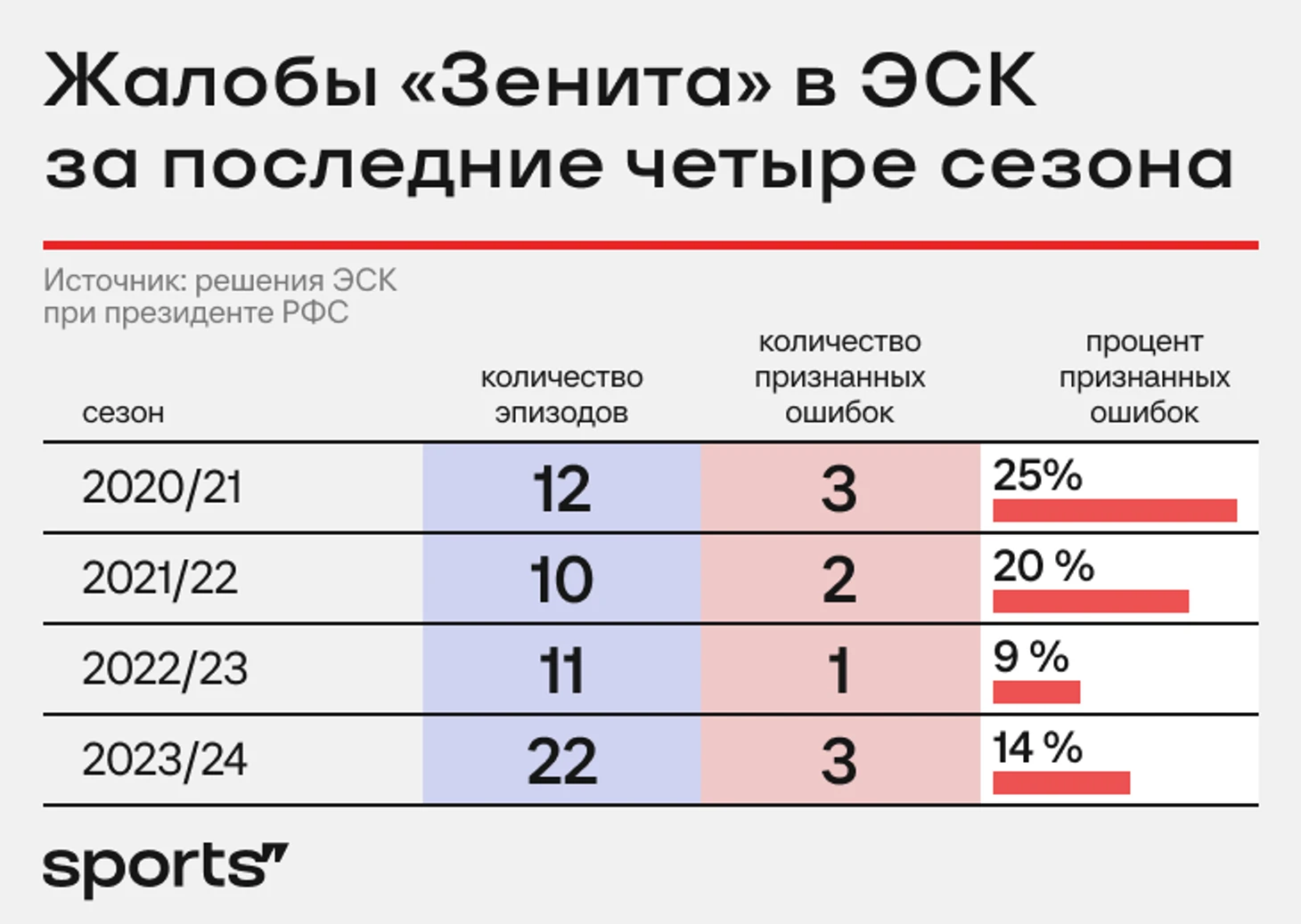 В этом сезоне «Зенит» жалуется в два раза чаще обычного, но количество ошибок выросло незначительно.