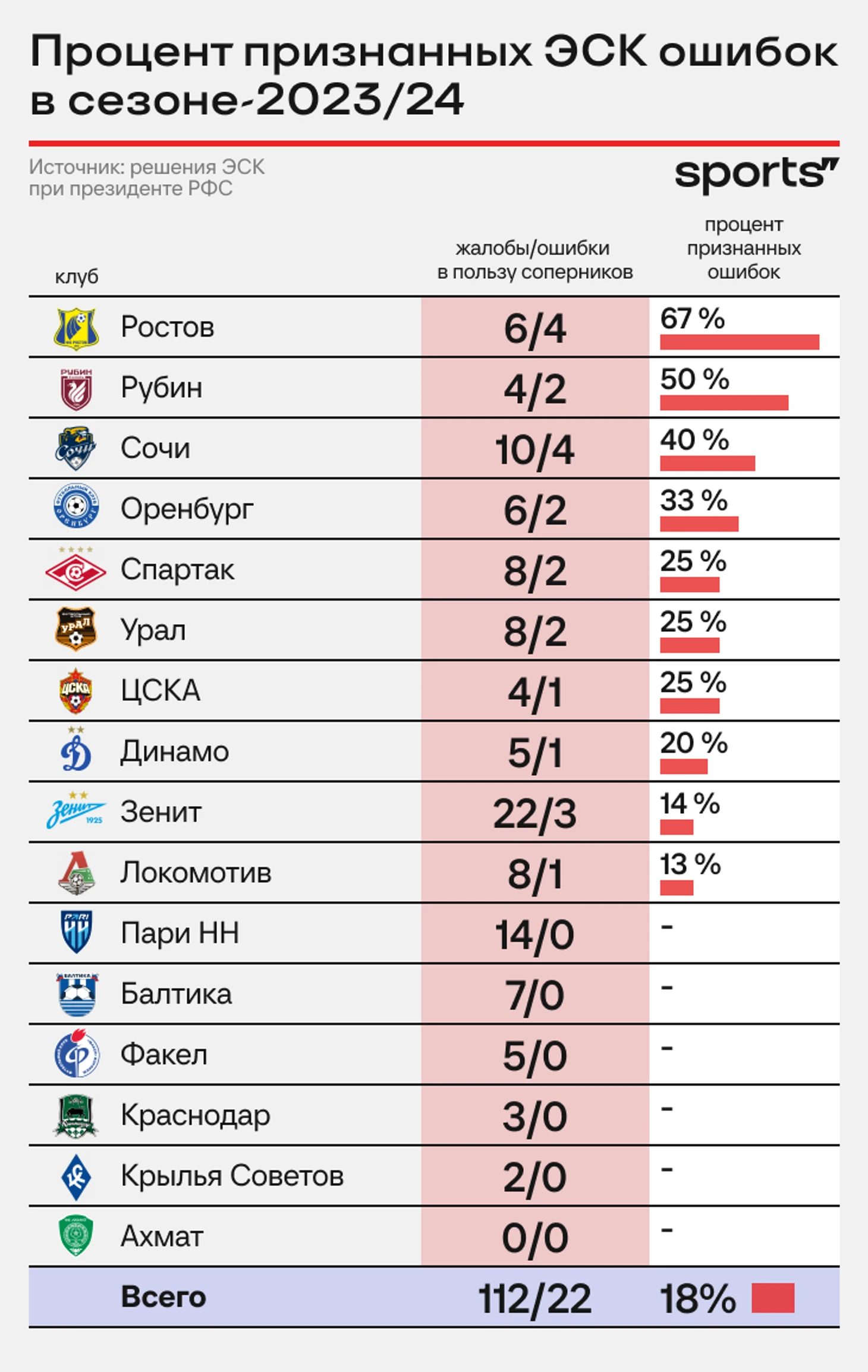 «Ростов» и «Рубин» лучше других ориентируются в алгоритмах ЭСК – у них самый высокий процент удовлетворения жалоб. Жаль, что такую эффективность не дают дополнительные очки.