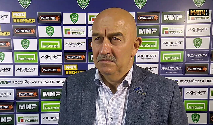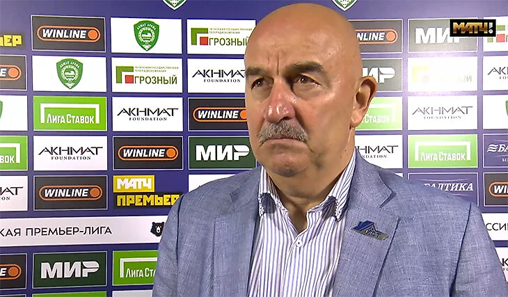 После 3:1 с «Крыльями Советов» главный тренер «Ахмата» Станислав Черчесов пришел на флэш-интервью «Матч ТВ» со значком КСТ на лацкане пиджака.