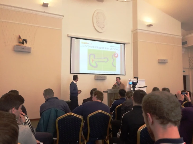 «Я здесь не для того, чтобы кого-то чему-то учить, – начинает теоретическую часть семинара Массимо. – Я бы хотел, чтобы вышла дискуссия, чтобы вы задавали интересующие вас вопросы». Мистер Луккези старается как можно дальше дистанцироваться от образа традиционного итальянского специалиста. Возможно потому, что в серии А сейчас не те времена, чтобы она могла безоговорочно диктовать свои методы другим. Он часто вспоминает свои международные командировки – посещения «Барселоны», несколько реже – «Бенфику» и «Андерлехт». Итальянские же коллеги выступают у него в роли невидимых заблуждающихся оппонентов. «Когда я говорю или показываю это в Италии, то мне говорят…». Далее следует пример, как все обстоит на самом деле. Видимо, на его родине не все так хорошо, как мы привыкли думать.