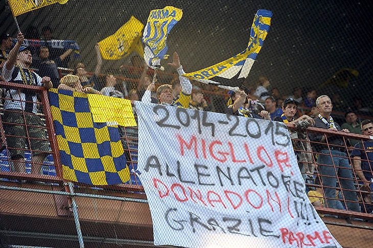 В сезоне 2013/14 его «Парма» заняла шестое место и стала главным сюрпризом серии А. По количеству побед подряд был побит рекорд золотой эпохи Невио Скалы. Потом был отказ в выдаче лицензии УЕФА, предательство Федерации, трусость владельца, долги по зарплатам, расставание с лидерами и отсутствие горячей воды в раздевалке. Тогда многие советовали Донадони покинуть «Парму», ведь у него не было недостатка в предложениях. Но он доработал до самого последнего дня, когда «крестоносцы» были изгнаны в серию Д.