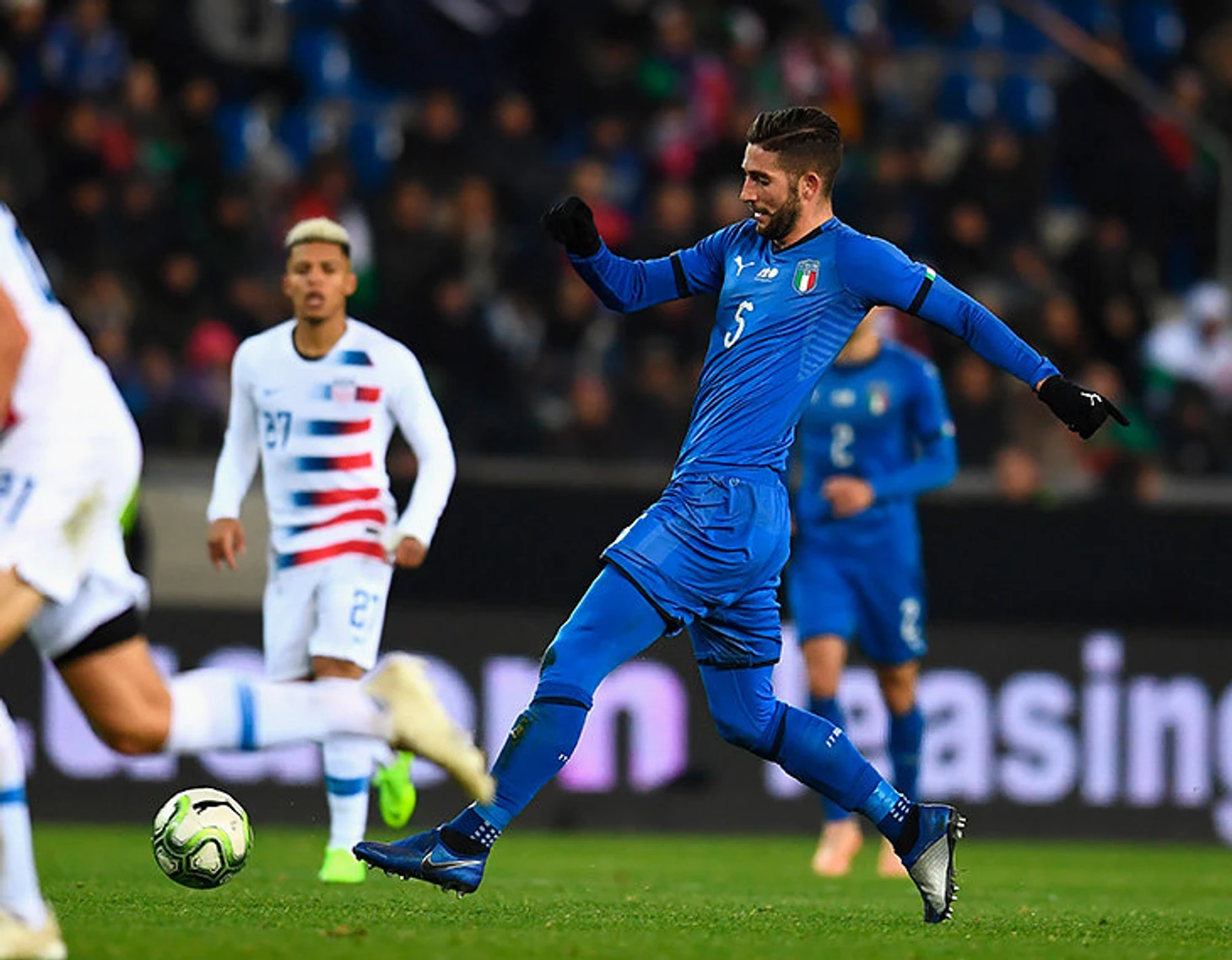 Кин - вышел, сразу сделал несколько мощных рывков и фактически заострил все внимание обороны американцев на себе, даже в момент гола, юный Мойзе увёл на себя 2 защитников, и Политано очень легко завершил комбинацию без какого либо сопротивления. В общем команда подбирается очень талантливая, но пока ей не хватает качества в атаке. С такими игроками как Лазанья каши не сварить.