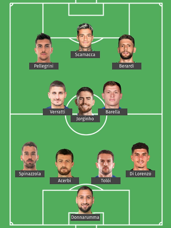 Три позиции, на которых могут быть перестановки. Толой – Романьоли. Берарди – Политано. Пеллегрини – Ньонто. Первые – фавориты, но наверняка в последний момент СТ что-то поменяет.