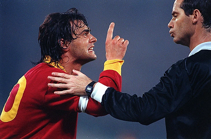 Однако в Италии нашелся человек, способный развить идеи Адзельо Вичини. Им оказался Карло Маццоне – свидетель становления Джанкарло Антоньони в «Фиорентине» в середине 1970-х. Уже тогда Маццоне предвидел, что настанет момент, когда придется перемещать плеймейкера ближе к линии обороны – в опорную зону. Однако до практической реализации этих замыслов пришлось ждать почти 20 лет. Летом 1993 года Маццоне возглавил «Рому», где в его распоряжении оказался Джаннини, но не было второй «десятки» – толкового фантазисты. Франческо Тотти был еще слишком молод, и Маццоне, ценой невероятных усилий, сумел удержать в команде будущего Императора. Несмотря на хорошее отношение со стороны тифози, Карлетто не задержался в Риме надолго. Вместе с ним покинул «Рому» и Джаннини, которому постоянно напоминали о незабитом в дерби пенальти, несмотря на то, что еще пару лет назад Беппе отказывался от заманчивых приглашений «Интера» и «Юве». Позабыли и о его знаменитом голе в ворота «Фоджи», когда он фактически спас клуб, не выигрывавший три с половиной месяца, от вылета в серию B.