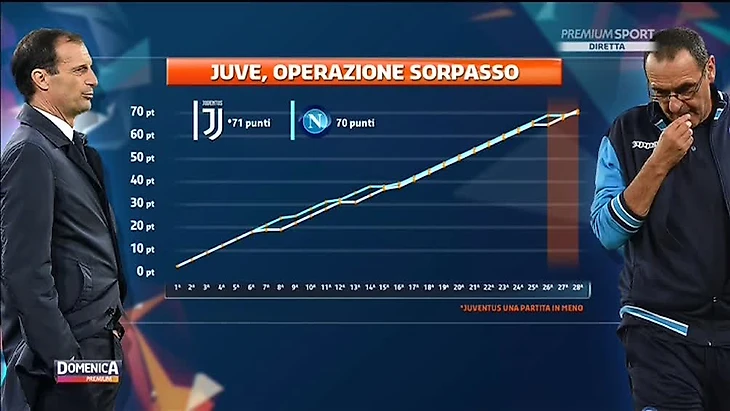 «Ювентус» после двух подряд осечек «Наполи» вышел на чистое первое место. Дежавю. Неаполь, "зимний чемпион", проигрывает в середине второго круга, а в следующем туре играет вничью с «Интером». В позапрошлом сезоне после похожих событий скудетто выиграл «Ювентус», опередив неаполитанцев в итоге на девять очков. Интрига в чемпионате Италии умерла? Наставник «Наполи» Маурицио Сарри в ответ на этот вопрос чуть не послал журналистку на пресс-конференции. Борцы за равенство полов требуют у тренера объяснений, а римская ежедневная газета La Repubblica после этого интервью вышла с каламбуром, дескать "сарризм - это синоним сексизма". Очень тонко, учитывая борьбу с "сеньорой" в чемпионате.