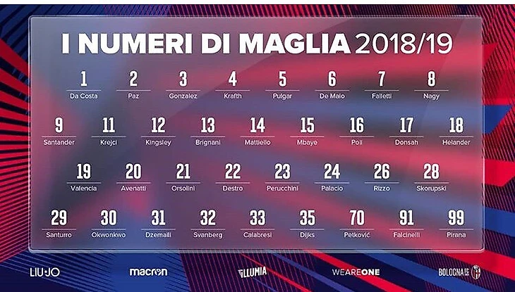 «Болонья» представила полный состав футболистов на сезон 2018/2019.