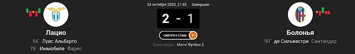 Второй гол "Лацио" забил Чиро Иммобиле после передачи "через себя" от Мохамеда Фареса. В концовке встречи гости размочили счет, но этого не хватило, чтобы получить хотя бы 1 очко. Это четвертое поражение "Болоньи" в пяти матчах.