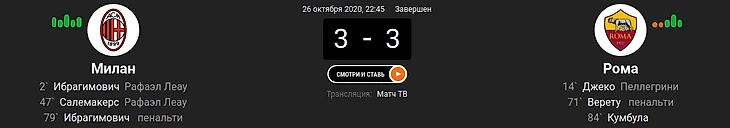 Во многом на пользу римлянам пошло то, что у основного вратаря "Милана", Джанлуиджи Доннаруммы, был диагностирован ковид, и его место в воротах в этом матче занял Чиприан Тэтэрушану. Две его ошибки привели к пропущенным голам (одна - напрямую, другая - косвенно). Дублем в матче отметился Златан Ибрагимович.