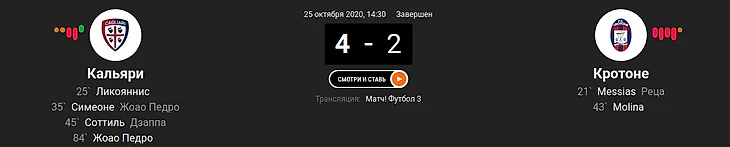 "Кротоне" проигрывает 5-й матч подряд, "Кальяри" одерживает превую домашнюю победу в сезоне.