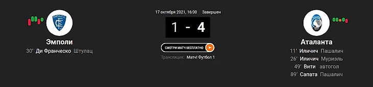 Довольно комичным получился третий гол «Аталанты»: защитник «Эмполи» Маттиа Вити ногой срезал мяч в свои ворота. Гульельмо Викарио мог взять мяч в руки, по крайней мере, так кажется на повторах, но не смог этого сделать. Возможно, вратарь посчитал срезку пасом назад, а, как известно, в таких ситуациях руками фиксировать мяч нельзя.