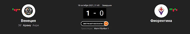 Для «Венеции» этот матч стал 3 подряд без поражений. Победа над «Фиорентиной» была одержана абсолютно в духе команды-аутсайдера: 4 удара по воротам, 2 в створ, 38% владения мячом.