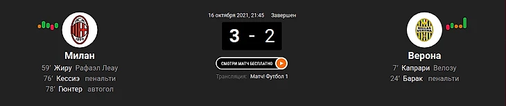 «Россонери» одержали волевую победу над «Вероной», подопечные Стефано Пиоли отыгрались со счета 0:2, забив трижды во втором тайме.