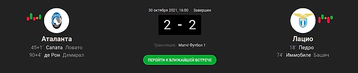 Команда Маурицио Сарри дважды выходила вперед (оба раза не без помощи соперников), однако «Аталанта» дважды сравнивала счет.
