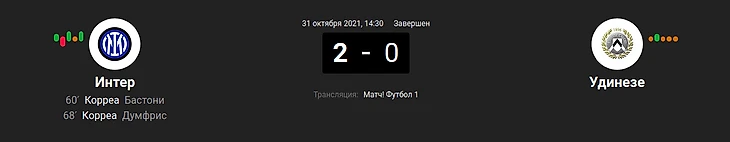 Хоакин Корреа успел отличиться дважды до того, как был заменен. Как показалось, Индзаги планировал сделать замену чуть раньше, Санчес готовился выйти на поле еще при счете 0:0, но тренер «Интера» не прогадал, оставив еще несколько минут игрового времени аргентинцу.
