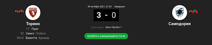 «Торино» впервые за 6 игр не пропустил, у команды 14 очков, она 12-я в таблице. У «Сампдории» 1 победа в последних 7-ми матчах, 15-е место.