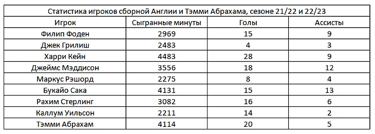 Сразу отмечу, что не ставлю своей целью критиковать или оправдывать решение Гарета Саутгейта, и не пытаюсь убедить в том, что Абрахам должен был оказаться в финальной заявке. Сам главный тренер сборной Англии отметил, что решающую роль при выборе сыграла не лучшая форма футболиста.