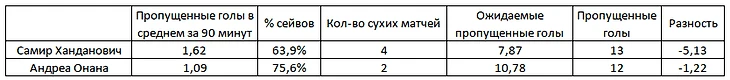 Показатели Онаны лучше, чем у Самира, особенно по части ожидаемых пропущенных мячей.