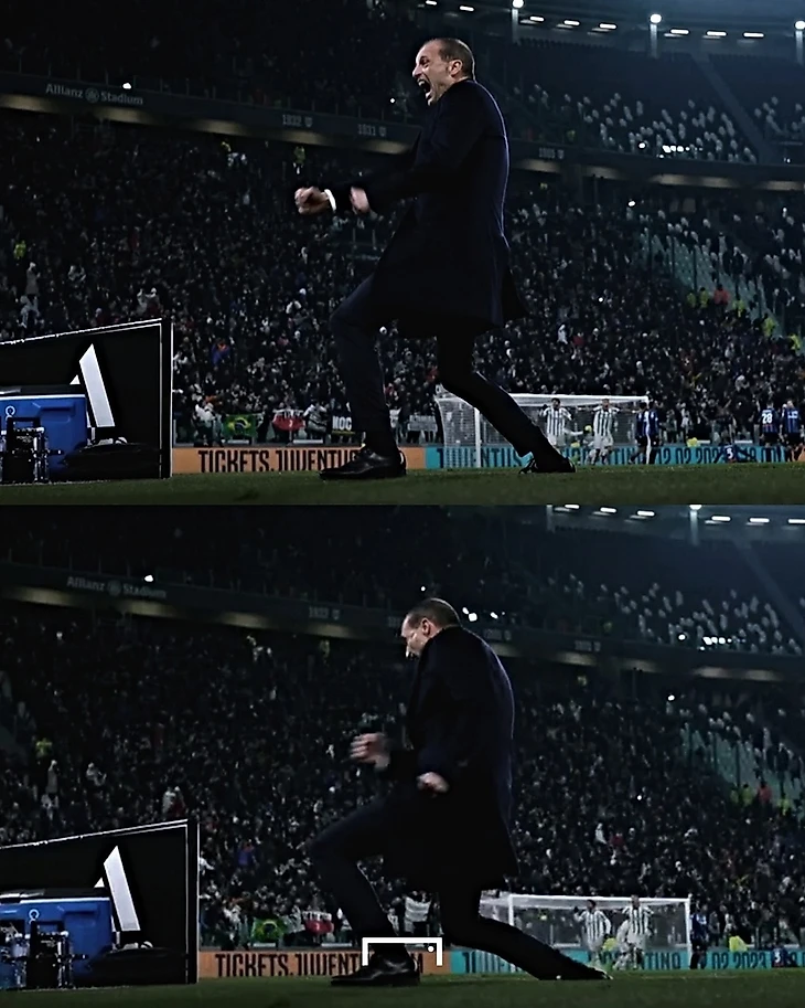 Это реакция на гол «Ювентуса» в ворота «Аталанты», после которого счет стал 3:3. Причем случилось это не на 90+10 минуте, а 65-й. То есть играть предстояло еще 25 минут, а Аллегри уже все устраивало.