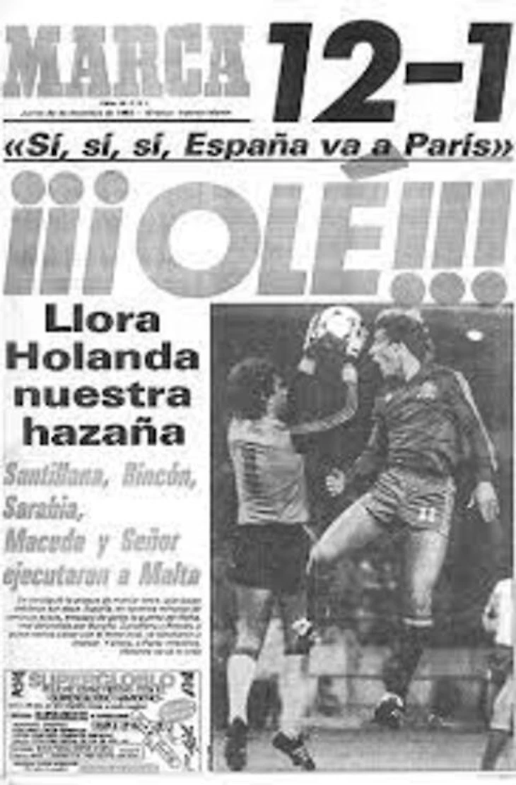 В квалификации на Евро-1984 в одной группе с Испанией оказались Нидерланды, Ирландия, Испания и Мальта. Отбор сложился для «красной фурии» таким образом, что в последнем матче необходимо было дома обыграть сборную Мальты с разницей в 11 мячей или более. Только при таком раскладе команда могла отобраться на Чемпионат Европы.