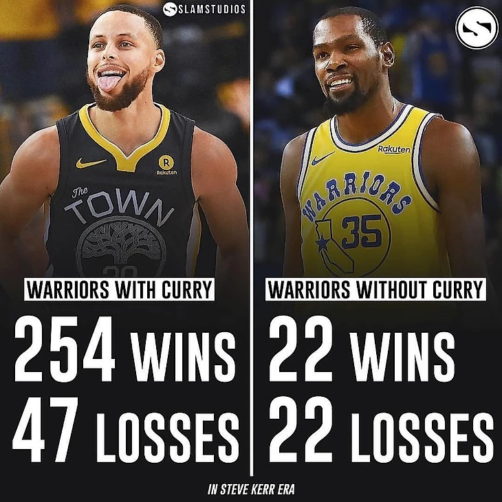 Несмотря на то, что по баскетбольным умениям и таланту самым сильным игроков Голден Стейт является Кевин Дюрант, команда соперника строит свою игру, в первую очередь, именно против Стефа, так как он является сердцем и двигателем своей команды. Об этом красноречиво говорят цифры Уорриорз в матчах с Карри и без него: