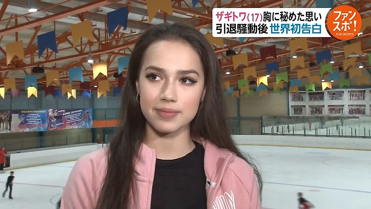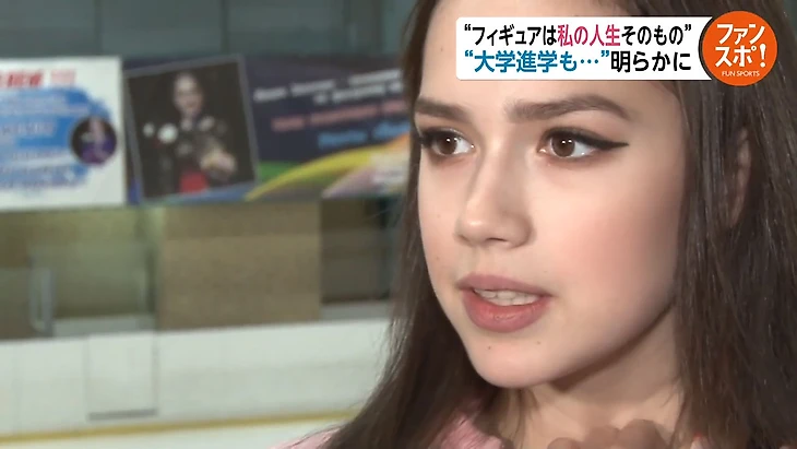 Алина успокоила японских болельщиков тем, что будет пропускать только чемпионат России и потом планирует вернуться к соревнованиям, а также подтвердила, что в планах поступление в университет. Какой, пока не сказала. В конце интервью Алина передала привет японским болельщикам и выразила благодарность за поддержку.
