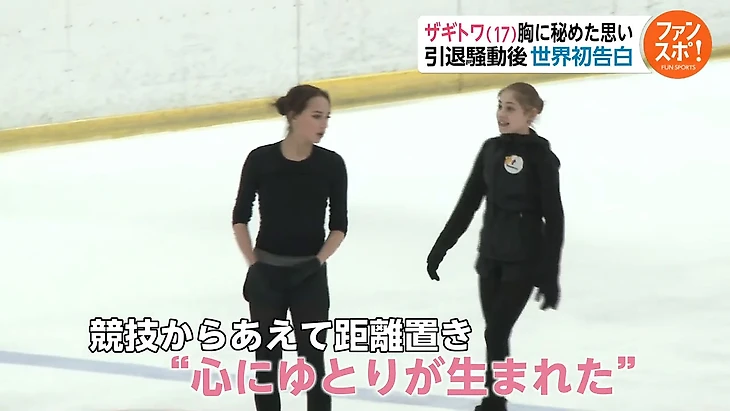 Надо отметить, что во время интервью Алины выглядела посвежевшей и совершенно расслабленной. Видно невооруженным взглядом, что решение отдохнуть уже оказывает благотворное психологическое влияние на фигуристку. Хотя отдыхом это можно назвать с натяжкой, так как интервью проходило на катке перед тренировкой команды Этери Тутберидзе. Японцам позволили вести съёмку и во время тренировки. Японцы отметили, что прыжки у Алины пока не совсем гладко получаются, но со спинами и катанием всё в порядке. На плёнку попали кадры с падением Алины на одном из прыжков, Алёной Косторной и Алиной, а также проверкой Алиной сообщений на своём телефоне.