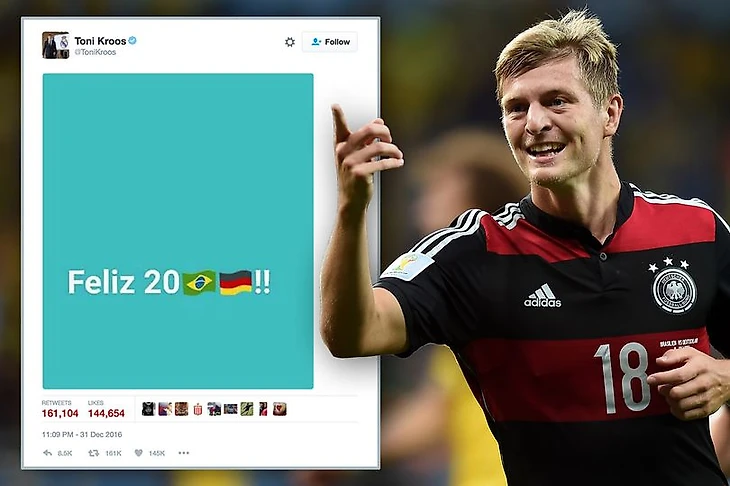 Полтора года назад Тони Кроос поздравил всех с новым 2017 годом, потроллив 7-1 над Бразилией. Торсида поздравила «героя» матча с Кореей