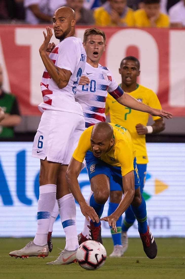 Вообще форвард "Ливерпуля", дождавшись наконец своего шанса в старте, вместе с Неймаром и Дугласом был однозначно лучшим игроком матча, постоянно открываясь на линии, прессингуя защитников и ища свободные зоны.Вообще форвард "Ливерпуля", дождавшись наконец своего шанса в старте, вместе с Неймаром и Дугласом был однозначно лучшим игроком матча, постоянно открываясь на линии, прессингуя защитников и ища свободные зоны. Дуглас Коста вообще провел образцовый матч, вообще впервые после ЧМ в Селесао не просто продуктивно действовали оба фланга, но правый был все-таки поострее до выхода Виллиана, нежели фланг Неймара. Здесь немалую роль сыграл и еще один "возвращенец"-Фабиньо, поначалу сконцентрировавшийся на обороне, а потом осмелел, "съел" экс-баварца Грина, и стал идти вперед, сначала сильно пробив во вратаря американцев Стеффена, а потом, получив своевременный пас от Косты, ворвался в штрафную, где ему пересек траекторию движения капитан США, моторный опорник Трапп. Пенальти, как говорится, на усмотрение судьи, но контакт, справедливости ради, все же был. По крайней мере эксперт Fox,комментировавший матч, и изменившийся до неузнаваемости (сбрил свою роскошную шевелюру,рыжую бороду и усы), легенда соккера, Алекси Лалас признал правоту судьи. Неймар пенальти реализовал.