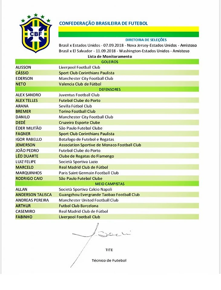 То есть частичную реорганизацию и омоложение состава тренерский штаб провел. Тите с Эду правда обещали после ноябрьских спаррингов опубликовать некий лонг-лист кандидатов,из которых и будет отбираться итоговая заявка на Копу,но забыли это сделать,видимо решили что просочившегося в прессу в августе подобного "списка 55" как у Газзаева в свое время будет достаточно.