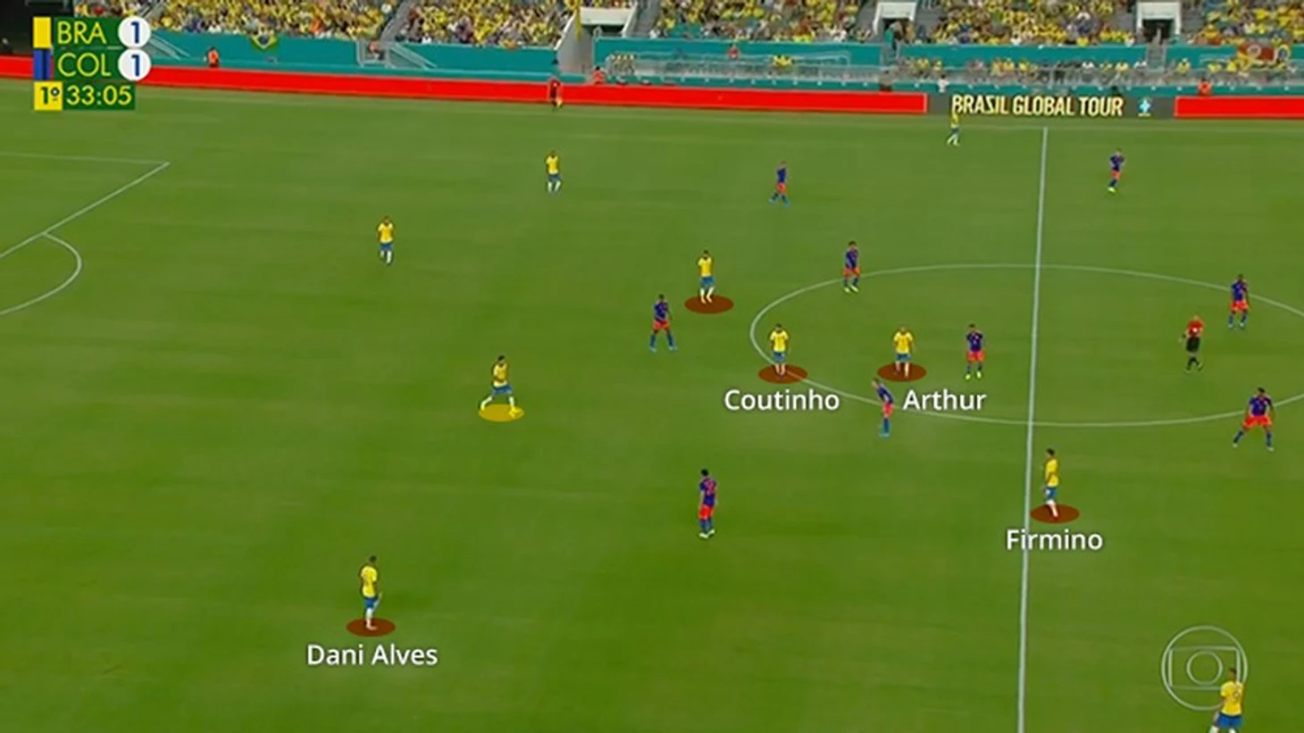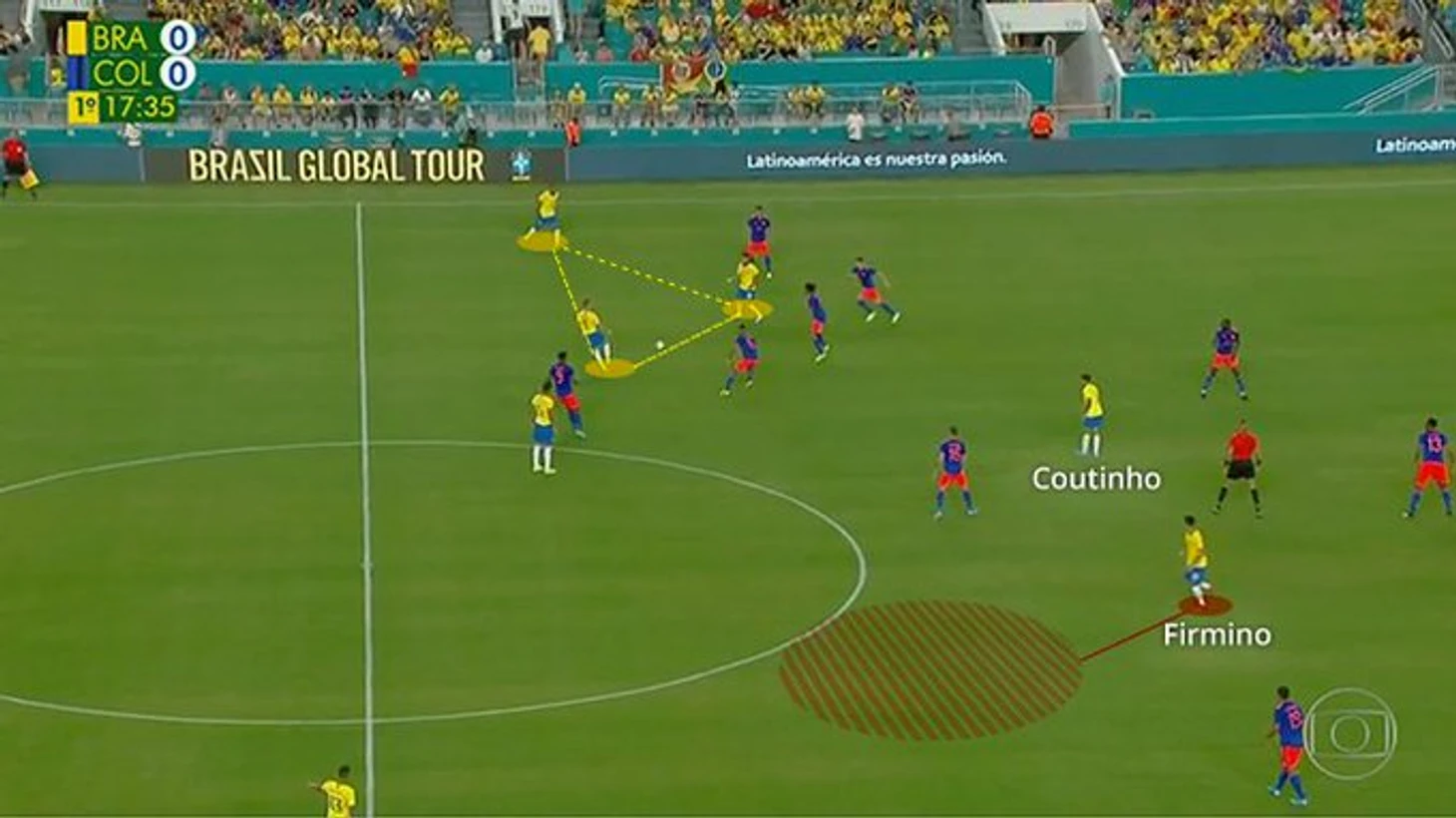 Вообще слабая игра Артура,особенно в первом тайме неприятно удивила. И колумбийцы вольготно чувствовали себя при контратаках, и своим приходилось опускать глубоко в поисках мяча. Тот же Фирмино искал передачи чуть ли не у центральной линии