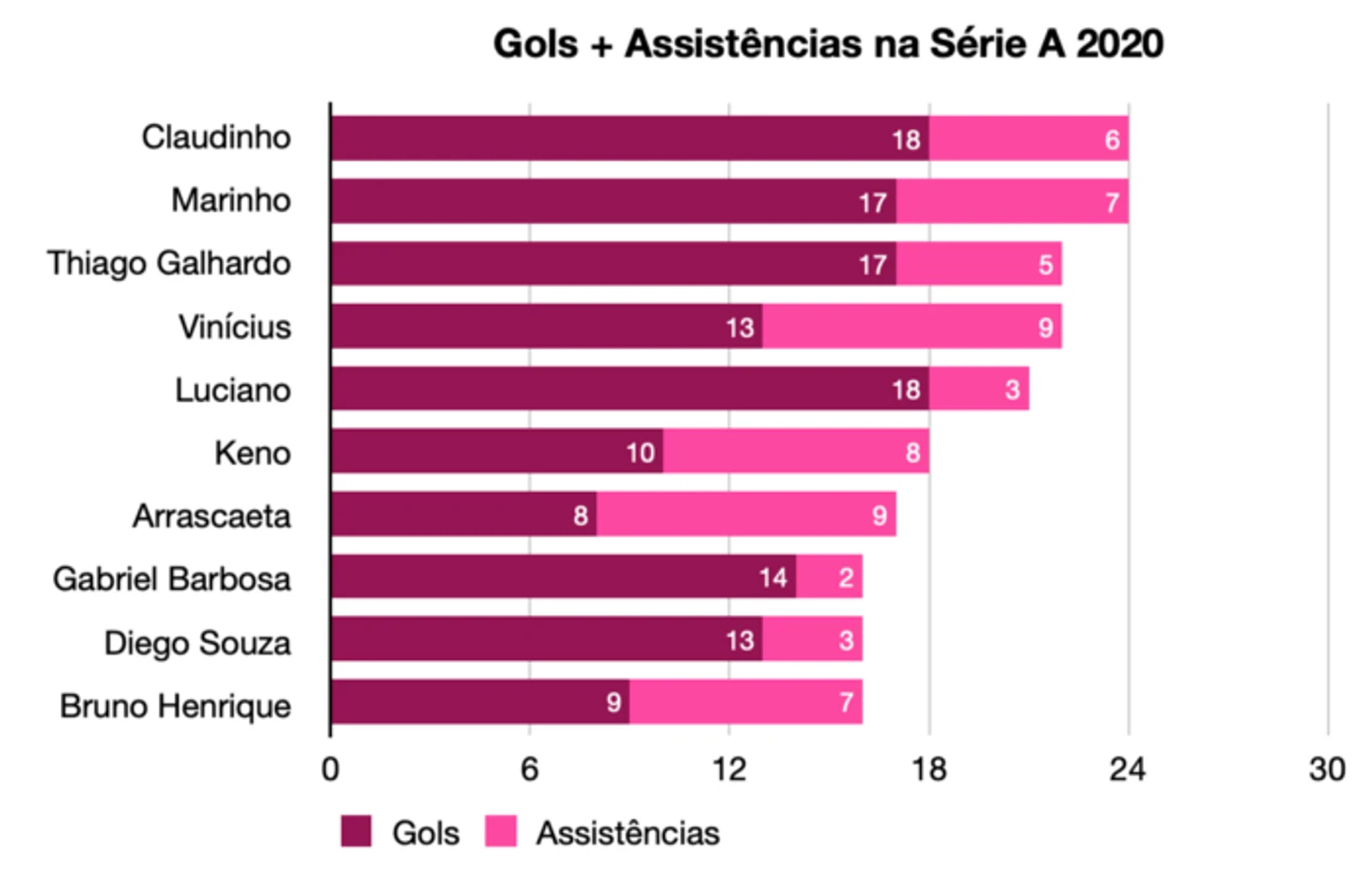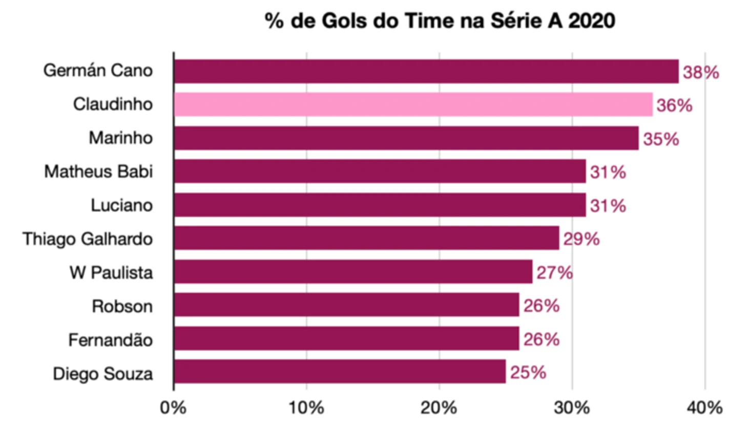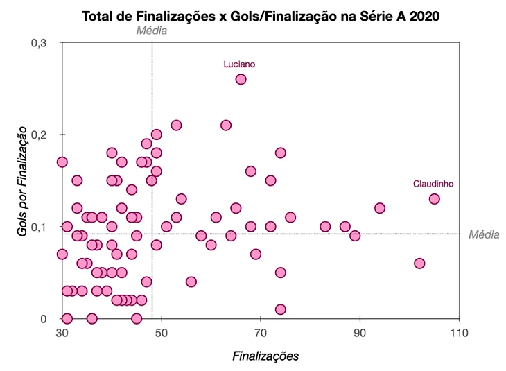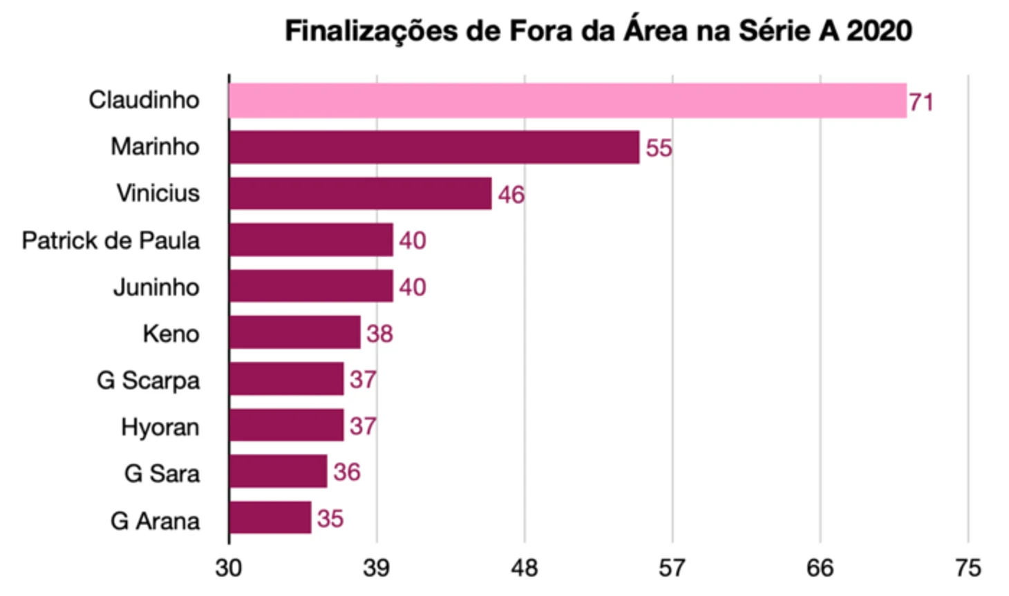 Вспомнить примеры, когда он откровенно губит атаки ударом вместо передачи мне сложно: Клаудиньо – совершенно не жадный игрок. Но все-таки над точностью ударов ему стоит поработать для успеха в Европе. И это несмотря на то,что Клаудиньо лучший бомбардир Бразилейрао с 18 мячами, а по соотношению xG он впереди всех героев Бразилии нынешнего года