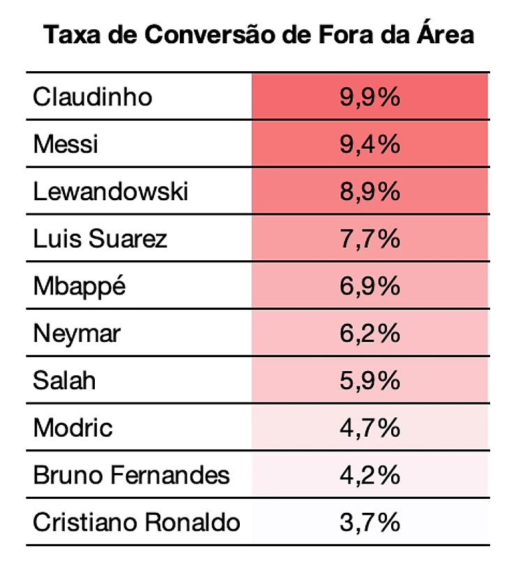 Более того, есть такой чумовой показатель как эффективность его дальних ударов. Почти 10% попыток закончились голов (в среднем по лиге эта цифра 3%)