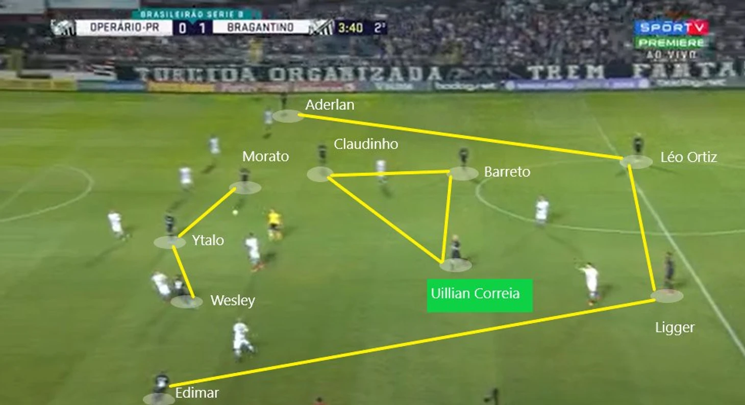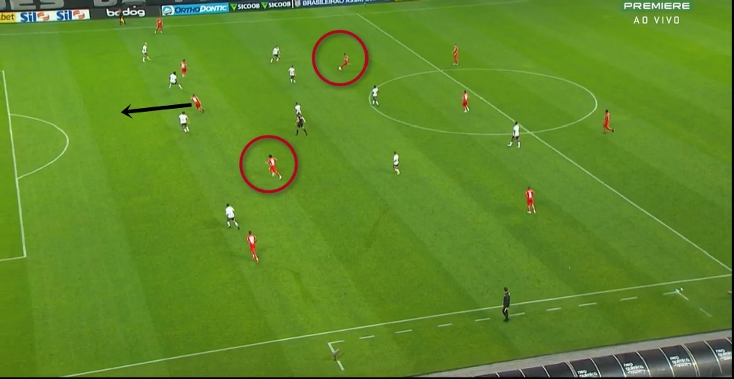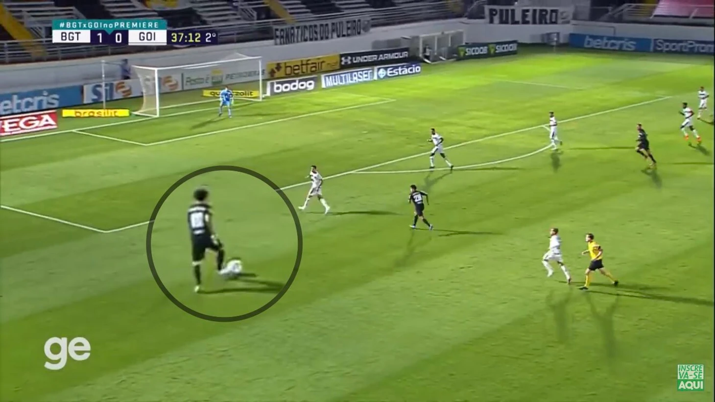 Я особо не делал упор на игру Клаудиньо без мяча в обороне, но здесь нет явных минусов. Клаудиньо, как и почти любой игрок подобного типа с таким большим влиянием на атаку нередко от объемной оборонительной работы освобождался. Свои задачи – опуститься глубже, закрыть зону, оказывать давление на игрока с мячом, перекрывать линию передачи – Клаудиньо выполнял без особенных проблем. Даже в прессинге («Брагантино» не каждый матч прессингует интенсивно и высоко-это все-таки Бразилия с ее климатом, но включает давление довольно часто) Клаудиньо был вполне неплох: он достаточно работоспособный, очень хорошо умеет поймать момент – выскочить из-за спины, поджать,поймать ошибку, прочитать легкий эпизод. Даже Дани Алвес не выдерживал его прессинга,привозя в свои ворота.