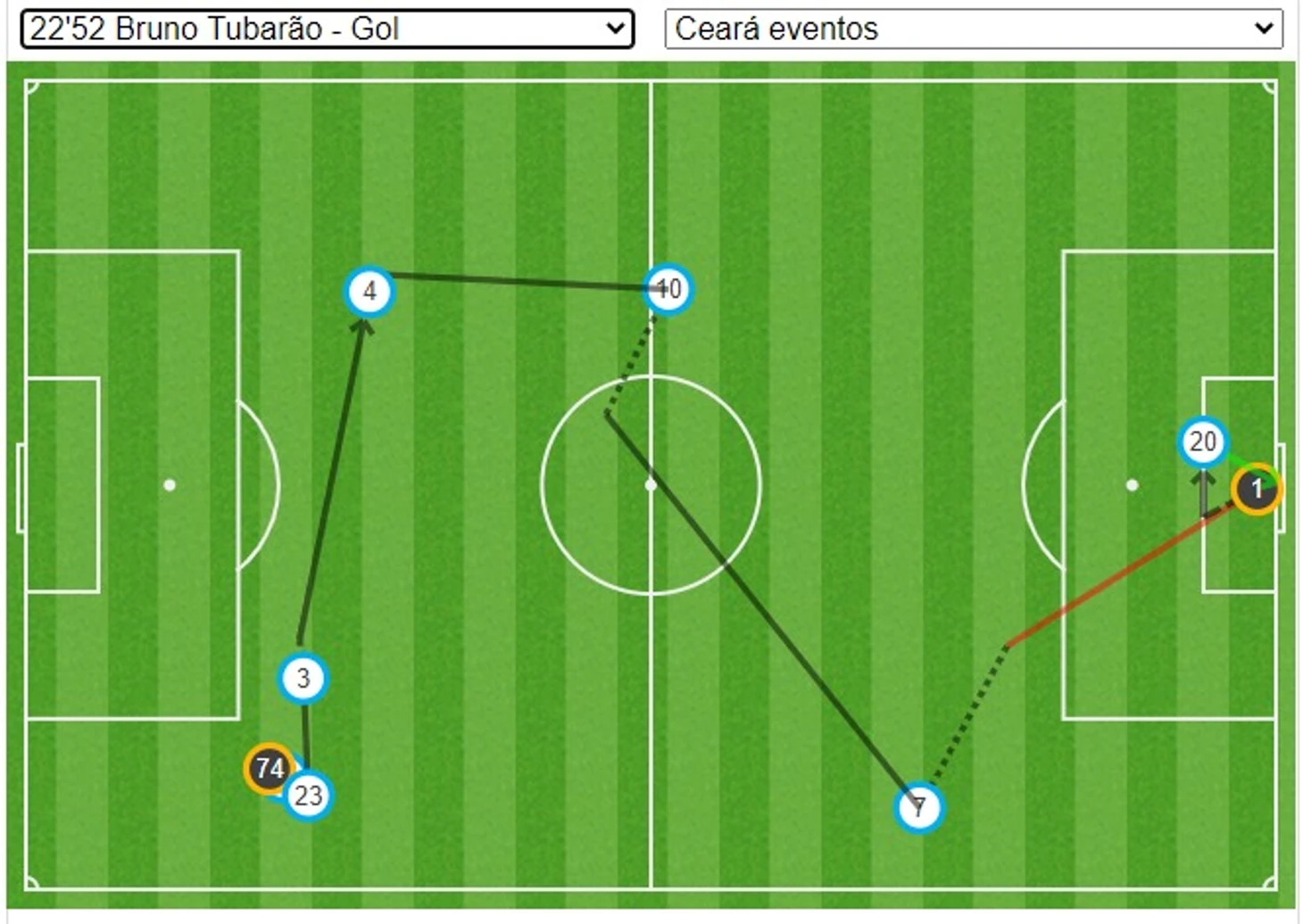 Нацеленность Клаудиньо на игру вперед у штрафной переходит в постоянный поиск и регулярную поставку передач в штрафную или к штрафной, с постоянной атакой пространства за спинами защитников – движением после передачи или самой передачей. В контексте движения обычно это та же работа в треугольниках, но с открыванием в штрафную.