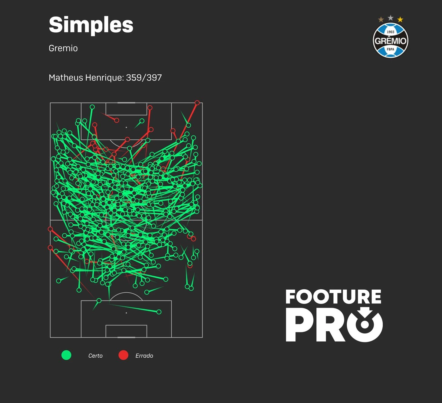 Пасовая активность Матеусиньо в этом году. Точность 90% (359 из 397)
