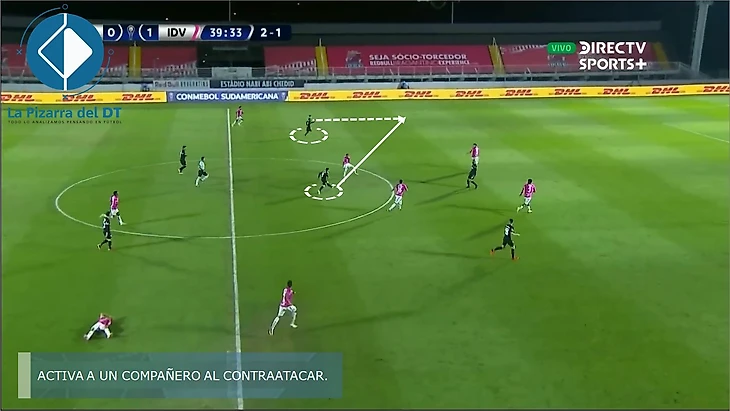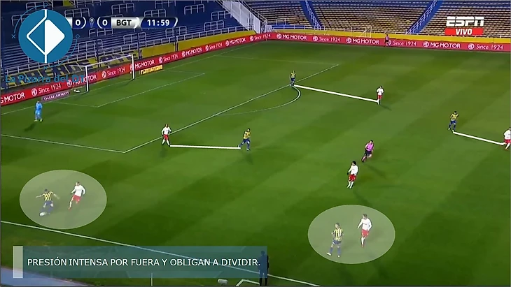 Здесь команда перестраивается на 4–1–4–1/4-4-2 и работает на этих линиях. Обороняющиеся начиная с Итало всегда действуют агрессивно, чтобы максимально быстро вернуть владение, всегда стараясь держать несколько игроков в зоне мяча.