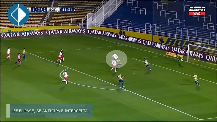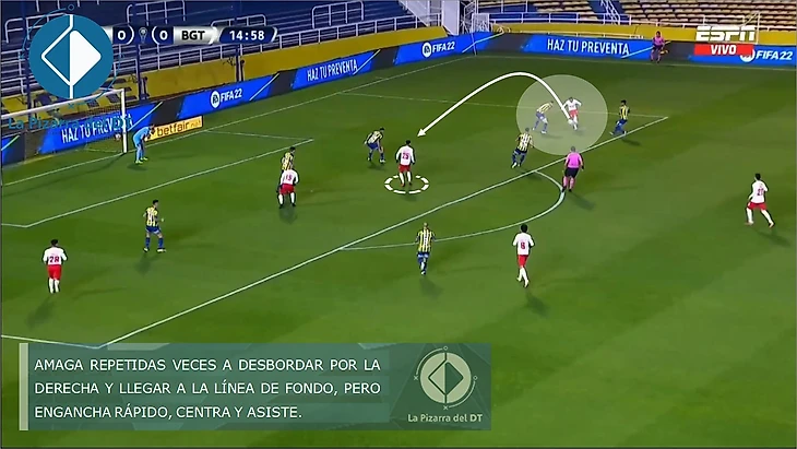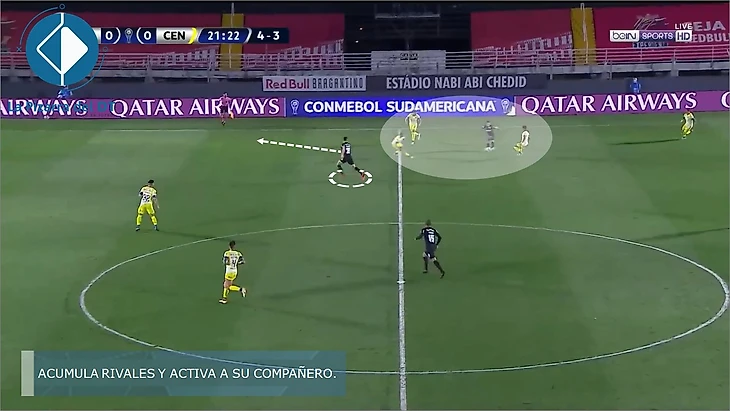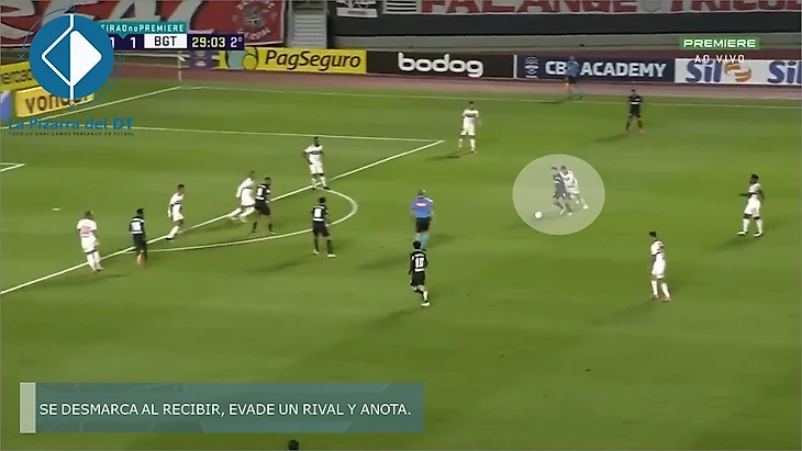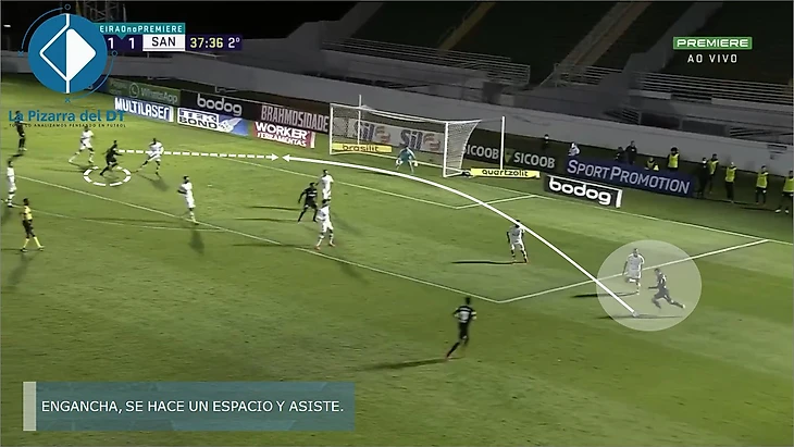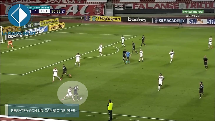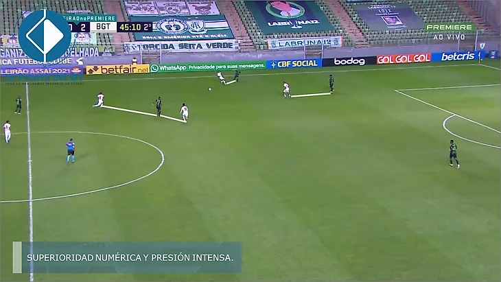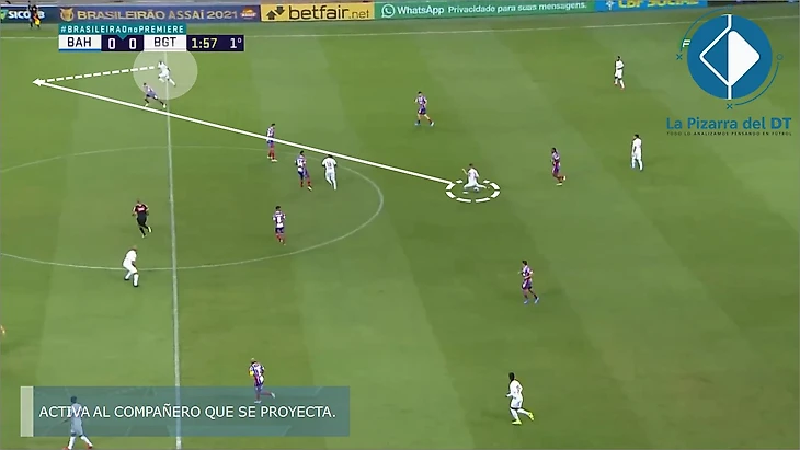 В данном переходе очень важны роли латералей. Один из них, как правило левый, создает треугольник загейро, в случае Брагантино это Эдимар