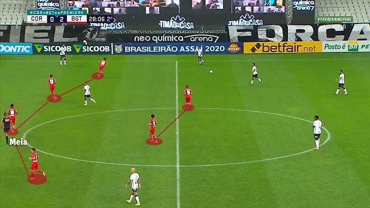 Ключевой момент игры "Брагантино" это великолепно отлаженный высокий прессинг, по этому показателю команда была лучшей в прошлом Бразилейрао-и здесь неважно кто на поле - технарь Клаудиньо или более приземленный Прашедес, главное-слаженность действий.