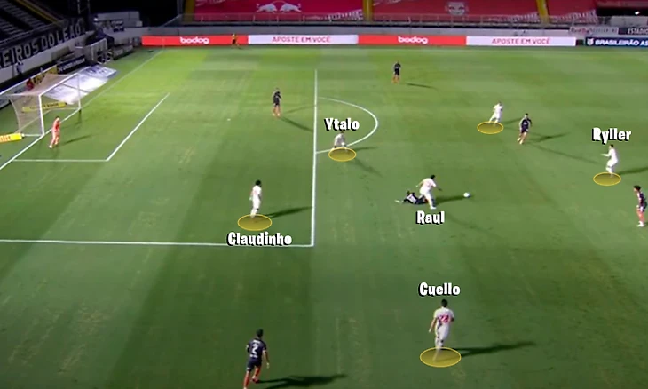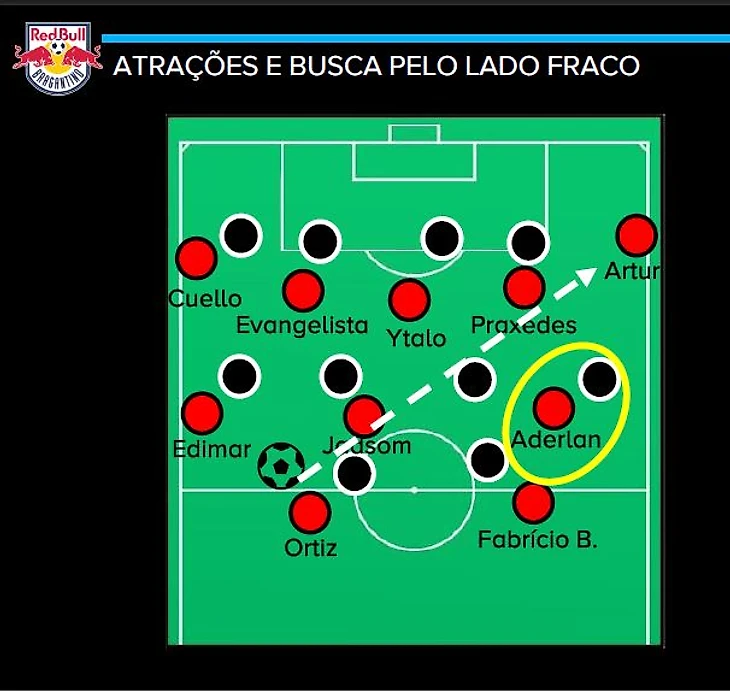 В данном случае Артур и Элиньо/Куэлло максимально широко располагаются по флангам, позволяя Прашедесу и Рамиресу/активно подключающемуся Адерлану воспользоваться разрывами в линиях