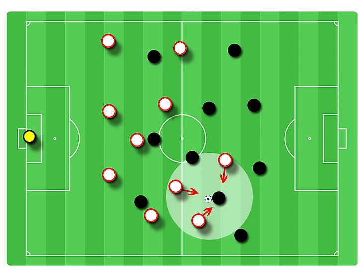 Цель состоит в том, чтобы использовать пространство и вскрывать оборонительные построения соперника. Расположение позиций может меняться в зависимости от расположения мяча. В этой игре владение мячом становится инструментом достижения превосходства.