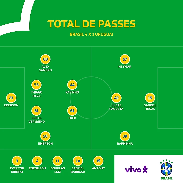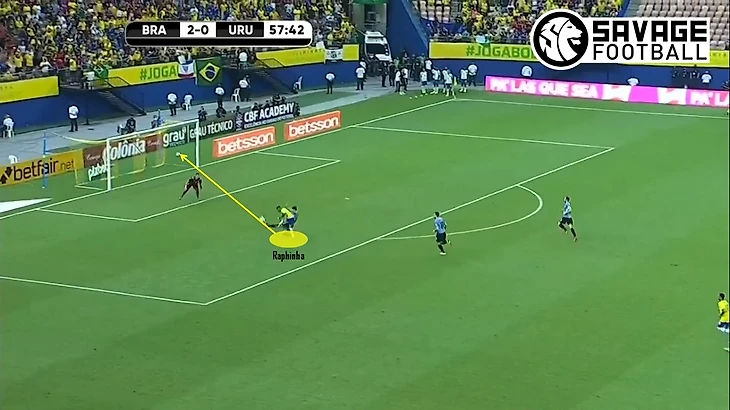 Причем обратите внимание, латерали Селесао, которых мы привыкли видеть в роли строгих "бровочников" ситуативно на чужой половине поля превращались в разыгрывающих полузащитников (конечно не Дани Алвес и Филипе Луис образца 2016-19, но все же довольно качественно, позволяя даже Фреду(!!!) играть более атакующую роль.