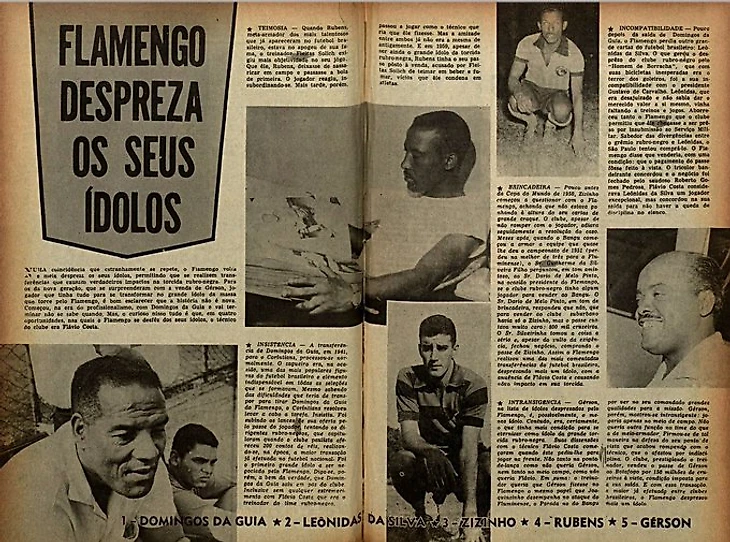 Заголовок в Revista do Esporte 12 июля 1963 года- "Фламенго" презирает своих легенд" Домингос Де Гия, Зиза, Жерсон, Леонидас и Рубенс.
