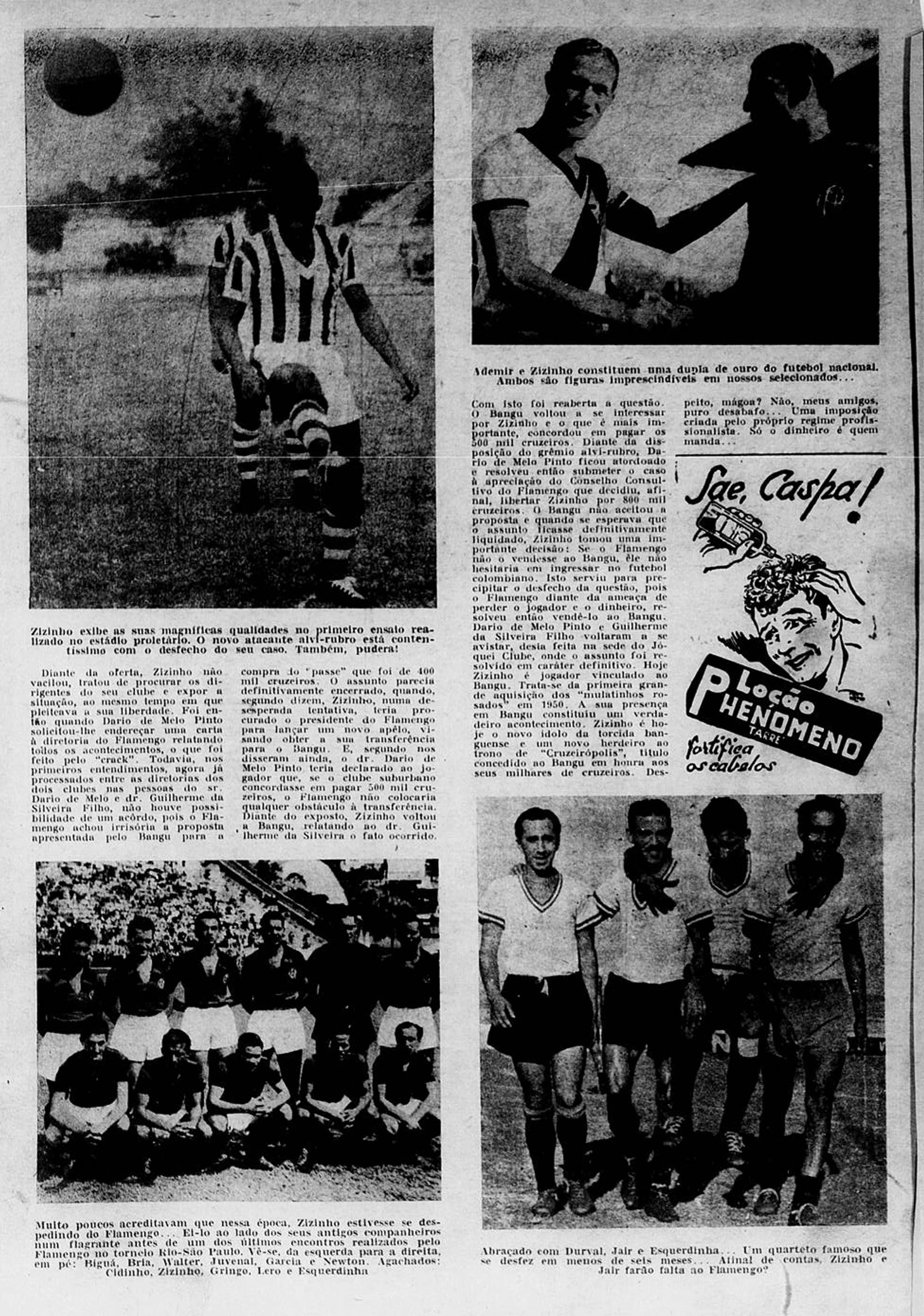 Его карьера в этом славном клубе продолжалась чуть более 10 лет, и предпосылок для ее окончания вроде бы не ощущалось, как вдруг в канун Мундиаля-1950, к которому вся Бразилия так тщательно готовилась, грянуло сенсационное известие: Зизиньо переходит в «Бангу». На пике. Заголовок O Globo Sportivo от 17 марта 1950.