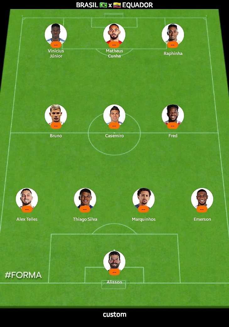 Состав Селесао мы с вами не так давно и подробно разбирали. Травм, слава богу, нет. Единственное мадридский "Реал" попросил не вызывать Тите четырех игроков,ведь им предстоят матчи Кубка Испании. КБФ ответила отказом. Да,Бразилия уже на ЧМ, но. Фабиньо дисквалифицирован-без двух основных воланте довольно рискованно играть, Милитао имеет все шансы выйти в старте, ну а Винисиусу в отсутствие Неймара надо показывать себя в качестве титулара. Можно было конечно уступить Родриго-в сборной переизбыток правых форвардов, но тренеры решили как решили.