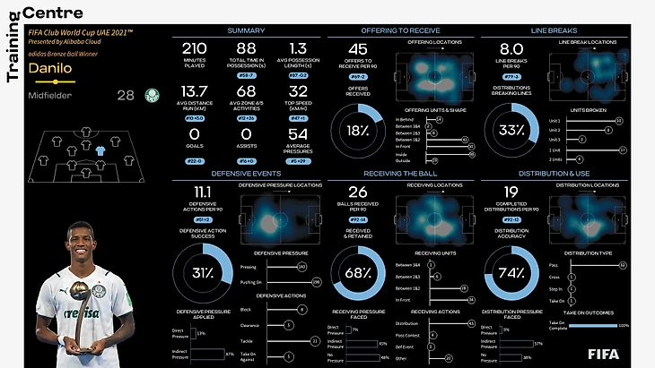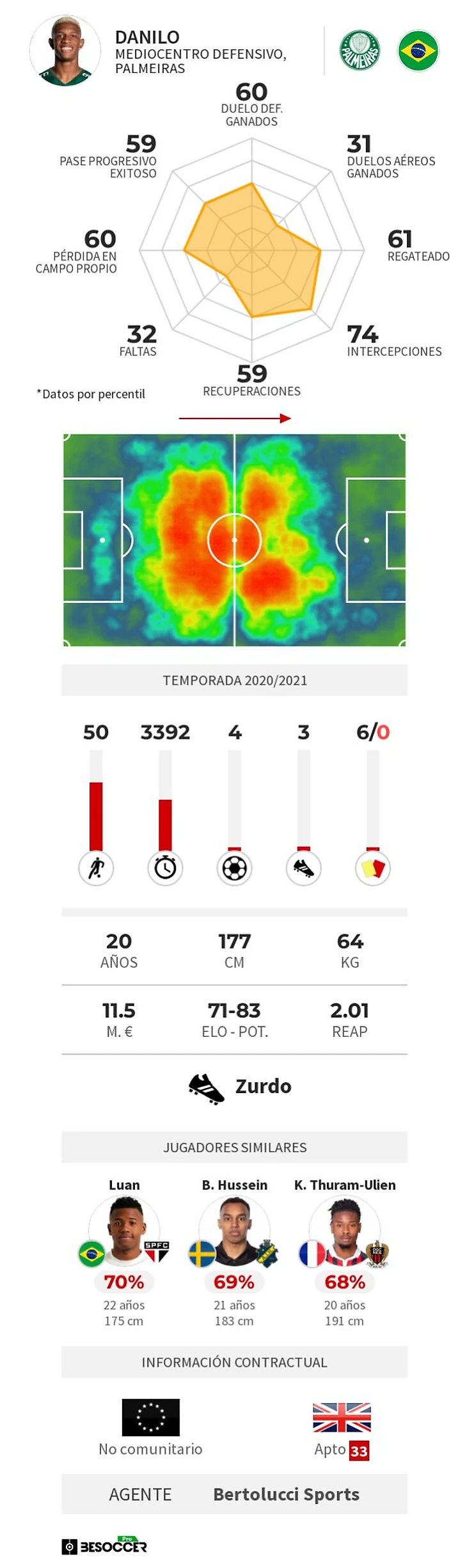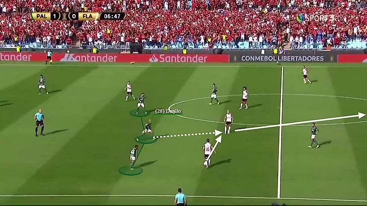 Без мяча Данило так же интересен. У него хорошее понимание того, что происходит вокруг него, и развитое позиционное чутье. Пожалуй по этому компоненту он лучший не только в Бразилии, но и на континенте. Только Энцо Фернандес может с ним поспорить. Посмотрите на видео-Данило из тех игроков, которые всегда принимают мяч с поднятой головой и часто еще до получения знают адресат передачи и выполняют ее.